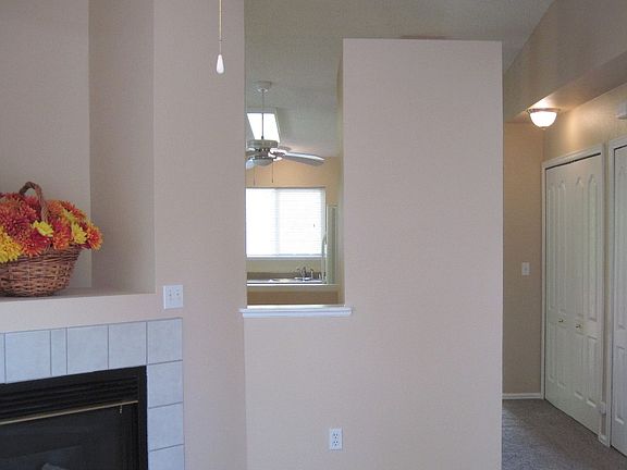 The entry has laminate wood opening to the main living area with vaulted ceilings and gas fireplace. The patio area is fenced and opens to an open area of trees and a gentle city view. The second bedroom has a generous closet with organizer. Laundry is perfectly located on the main level. The kitchen is well equipped with a Whirlpool self-cleaning range with smooth top and warming unit, Kenmore dishwasher, and a large GE refrigerator. Ample cabinets, including a panty, allow for plenty of storage. The home has lighted ceiling fans in each room, plus central air conditioning. New window blinds. New flooring throughout including carpet, laminate wood and dimensional vinyl. Raised panel colonial style interior doors. New paint.