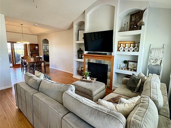 WOW FACTOR GALORE! This BEAUTIFUL 4 bedroom/ 2 bath home has everything you WANT and NEED all on one level! From the minute you enter the front door you will LOVE the Open floor plan with Hardwood flooring throughout the main living areas (4 bedrooms all have carpet). The Family Room has vaulted ceiling, large front window giving you plenty of natural light and custom built ins surrounding the gas fireplace and TV mount. The Kitchen and Dining Area flow directly from Family room making entertaining or just relaxing EASY. Kitchen has stainless steel appliances, large walk in pantry, under cabinet lighting, center island, beautiful counter tops and cabinetry with door leading directly to private back yard and covered patio. Primary bedroom is just off the dining area, with private access to patio, primary suite with double sinks, large walk in shower and customized walk in closet Laundry room conveniently located between primary bedroom and garage, has access door with steps leading down to a large crawl space area perfect for all your storage needs. Double car attached garage has custom shelving for additional storage, utility closet and has new epoxy treated flooring. Back Patio has covered area and uncovered area with 3 access doors (dining area, primary bedroom and 4th bedroom) allowing you to enjoy the fully fenced backyard in any kind of weather and enjoy the view! No houses behind you giving you privacy and a country feel IN the city! Landscaped yard, UGS, Storage Shed, and a front patio to enjoy the quiet cul-de-sac corner location make this a MUST SEE! NEW Exterior and Interior Paint 2023, Upgraded closet system in Primary and Nursery, Epoxy Garage Floor 2023, New Dishwasher and Refrigerator 2023