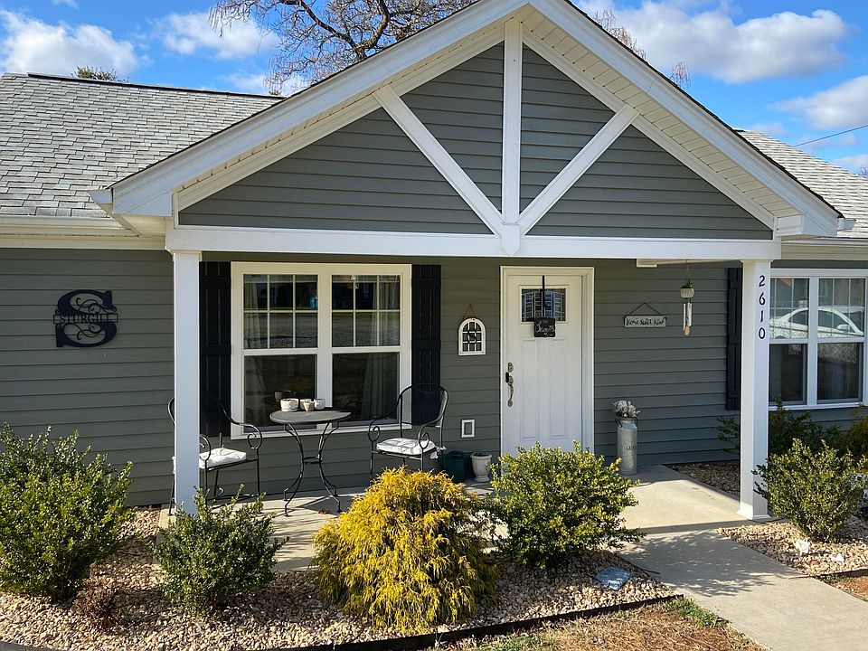 Great starter or retirement home practically brand new! just the right size! Ready to move into set on a slab (no stairs to contend with) plus a beautiful covered front porch! Hardwood at Entry Way. Living Room has cathedral ceiling, 4 piece bath area for your stackable washer & dryer. Nice Rear deck! New Landscaping at Front and Back yard zero maintenance. Brand New Refrigerator.