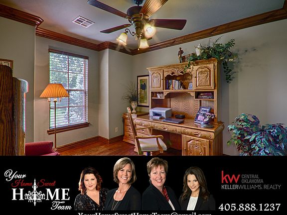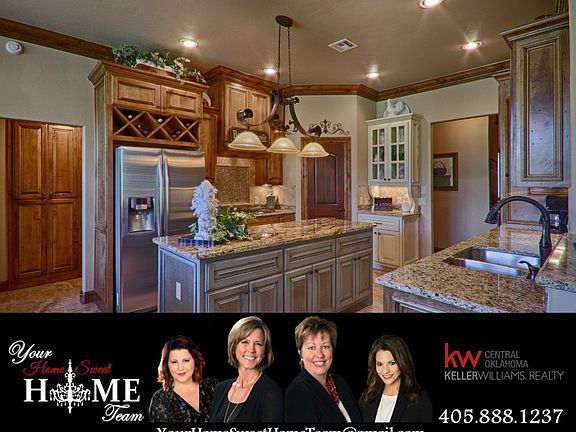 Fantastic custom home in a wonderful neighborhood. The home sits on a beautifully manicured 3/4 of an acre lot with a private well and wooded area. An open floor plan that could be 5 bedrooms if needed. Upgraded features include Bosch Appliances, California Closet and wood ceiling beams in the master suite, surround sound, spacious covered patio w/ built-in fireplace and much more! 3 bedrooms down, plus study with direct access to full bath, could be a 4th bedroom. Spacious bonus room up w/ full bath, could be a 5th bedroom. Breakfast area overlooking gorgeous woods w/ large pantry, island, under-counter lighting and custom granite. Open to living room featuring soaring cathedral ceilings with wood beams and stone remote controlled fireplace. Spacious utility with sink. Extra decking in attic offers plenty of storage space. Less than 5 minutes to I-35. Country living within minutes of all the conveniences of the city. Just a short drive to either downtown Edmond or Guthrie!