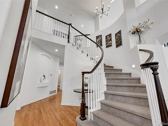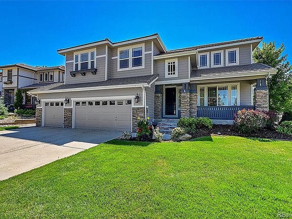 Highlands Ranch Golf Club beauty! Gorgeous sweeping staircase, elegant, soaring ceilings, very rare Shea Olympic. True semi-custom home, which is outstanding for multi generational living, with two bedrooms on the main level, (ask Listor details) and three bedrooms with an option for more upstairs. Newly upgraded, updated and beautiful. Views of the mountains and golf course. Private balcony/deck off the primary suite along with a beautiful fireplace. Enjoy a newly remodeled home, new stainless steel appliances, new paint and new carpet. Do you have a car collection? EASY 4th car space and even 5th, (ask Listor details). Walk to your golf game, the putting green or just enjoy drinks and views at the Highlands Ranch Golf Club.