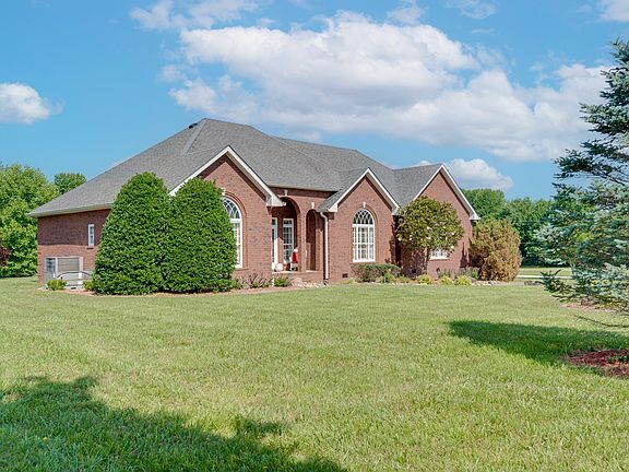 Custom home on 5 beautiful acres! All one level! 3 bedrooms, 2.5 baths. All brick, extra large den, formal living room, dining room, large eat in kitchen. Beautiful master suite. Tile, hardwood, new Kitchen Aid appliances, newer HVAC 16 seer unit. 2x6 insulated walls, crown molding, plantation shutters, 2 car attached garage and a 40x50 insulated shop. This one is a must see with too many features to list. Convenient to I-65 exit 104.