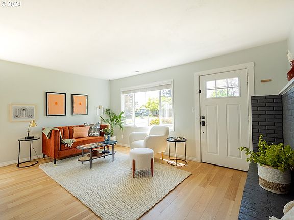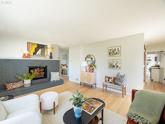 The style and durability of a midcentury ranch on a sprawling lot in a friendly neighborhood sounds pretty great, huh? We're here to tell you that it is. Practical horseshoe-shape floor plan creates a noise buffer that's a gift to light sleepers. Smart design invites optimal natural light, illuminating this home to show off her natural beauty. A large wood burning fireplace with hearth delivers A+ coziness, and who doesn't love big windows and blonde hardwood floors? Three bedrooms and a full bath complete this section of the home. The beautiful, updated galley kitchen is bright and spacious, with loads of cabinet and counter space, and an easy flow. It connects both sides of the house, and has a cheery little dining area to boot. A bonus living area with all of the utility is neatly contained here, with a half bath and laundry tucked away, and there's sliding doors leading out to a back patio - easily transport meals from the kitchen to the deck for al fresco dining. Many recent mechanical updates, including newer water heater and roof. All of this on an uncommonly large lot, providing country living feels in a convenient location right off Division St., and close to the stunning views, trails, and sunsets of Powell Butte, a popular hiking spot for people and pups alike. Schools, shops, parks, and more are also nearby, with commute thoroughfares in all directions. This is a solid, stylish home that's 100% dialed-in - but with fantastic urban homestead potential - in a sweet and sleepy SE Portland community. [Home Energy Score = 4. HES Report at https://rpt.greenbuildingregistry.com/hes/OR10227055]