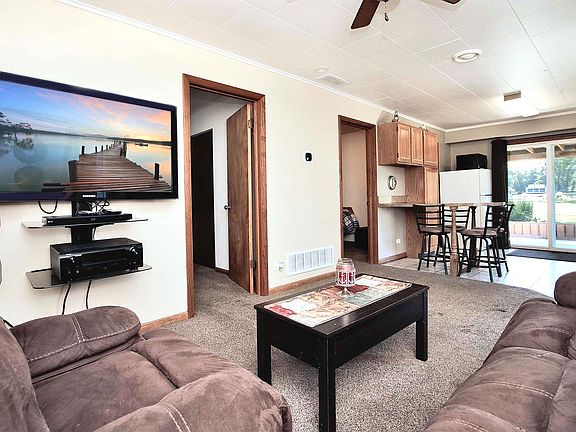 SWEET RIVER HOUSE WAITING FOR A NEW OWNER~ 2 BEDS AND 1 FULL BATH~ NICE LIVING ROOM AND KITCHEN WITH NEWER COUNTERTOP, BREAKFAST BAR, AND AMPLE CABINETS FOR STORAGE~NEWER HVAC, WATER HEATER, CARPET, SIDING, WINDOWS, DOORS, ASPHALT DRIVEWAY & ROOF~ BEAUTIFUL PROFESSIONALLY CARED FOR LANDSCAPING~ PERFECT FOR WEEKEND HOME WITH ALMOST NO UPKEEP~ LARGE LOT WITH SANDY BEACH, NEWER DOCK, FIREPIT~ COVERED PORCH OFF KITCHEN LARGE ENOUGH FOR TABLE & CHAIRS AND A GRILL (PERFECT FOR ENTERTAINING OR OUTSIDE DINING)~ COVERED PORCH HAS ELECTRIC TO SUPPORT A LARGE HOT TUB~ 2 LARGE SHEDS WITH ELECTRICITY (1 IS HEATED) PROVIDE AMPLE STORAGE FOR ALL WATER TOYS, LAWN MOWER, GARBAGE CANS, GARDENING EQUIPMENT, AND ANYTHING ELSE~ **SELLER IS SELLING HOME "FURNISHED" WITH ITEMS CURRENTLY IN HOUSE IF BUYER DESIRES**