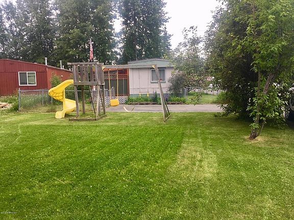 Charming mobile home with a fenced in yard on a corner lot. Covered front porch with new stainless steel kitchen appliances, and new washer and dryer! Yard has a lot of raspberry bushes, an apple tree.lilies, iris, bleeding hearts and more! Playground in the front yard. No repairs to be done. Cash only.