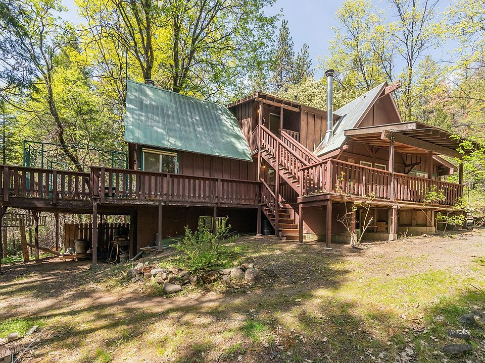 REDUCED FOR QUICK SALE!! Cabin in the Woods, Close To Town! This cozy 2 bedroom, 1 bath cabin, sits on just under 9 acres, & is located on the outskirts of Weaverville. The wrap around decking (on two levels) allows for amazing views of the surrounding mountains and property. The home features two large primary bedrooms, one on each level, & both with vaulted ceilings. Downstairs you'll find a large living room, open to the dining room. The kitchen, laundry room, & a full bathroom. If shop space is what you're need, look no further! There are 2 four car garage/shops, with one having a bonus apartment above it, an additional bedroom, large living room, and a woodstove for guests. The property is partially fenced and has a gated entrance (shared by neighbors above). Property features a fenced in garden area/orchard, a small pond and a portion of the back property boarders the creek running through. Primary water source is by way of a private well, electricity is by way of solar which powers the batteries to the home, and there's a generator for back up. Sewer is by way of septic. This is an amazing opportunity to escape the city and have all the amenities of a self-sustainable property, & enjoy the mountains!