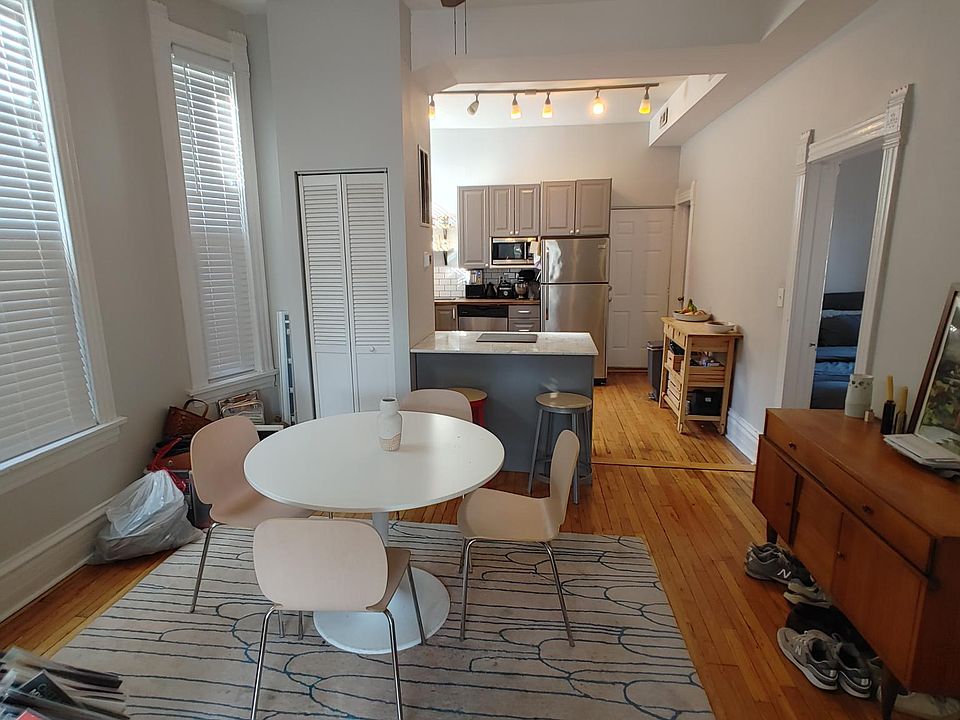 Stunning newly renovated top floor 2BD/1BA in Ukrainian Village! Available for mid-May or June 1st. Features hardwood floors, large windows, great natural light, and a spacious kitchen with high end stainless steel appliances including dishwasher and built in microwave. Large living room, dining room, and kitchen. Good size first bedroom (queen bed in photo) with excellent closet space. Second bedroom is a bit smaller and perfect for an office, however, it will fit a full size bed and has a decent size closet. Free laundry in building. Garage parking available for $150/month. Close to so many great restaurants and conveniences on Chicago Ave. Cats and small dogs OK ($150 fee).