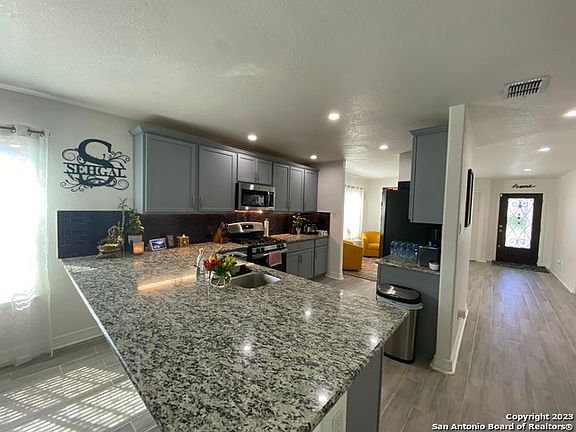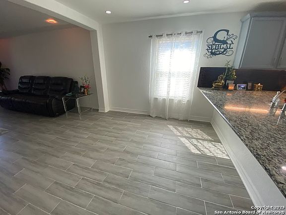 3/2, Split floor plan, Office as you enter, Formal Dining Room, Entertainers Kit w Granite, SS appliances & Gas Cooking - for all you Foodies!! Opens to spacious Family Room, Covered patio with outdoor television mounted, Large yard great for pups & kids! X-large Master Bedroom, huge closet & OOH LA LA - Spa like Master Bath!! Exterior and Interior programmable recessed lights. Includes washer/dryer set and fridge. Curtain Rods will remain so that you just have to add your curtains. Nest and water softener ready to be used just need to pay for monthly warranty. TV wall mounts and shed included ALL THIS & A 3 CAR GARAGE!! Super easy access to downtown, Spurs games, Bases & more!