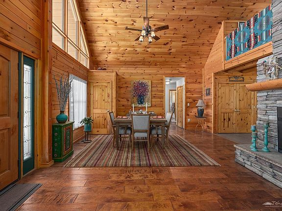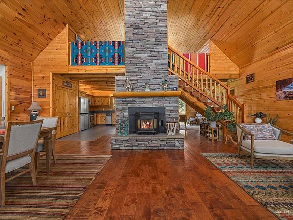 Experience a Slice Of Heaven in this custom-built, authentic Lincoln log cabin surrounded by tall pines in a park-like setting. This 3B/2B home, built in 2008, offers 2,237sf. of living space with top-notch quality design and craftsmanship apparent throughout. From the grand entryway with it's welcoming slate fireplace to the knotty pine cabinets and granite countertops in the kitchen, no expense was spared. The home features stainless steel appliances, vaulted ceilings, hardwood floors, slate tile and Pella windows throughout, emphasizing a blend of elegance and rustic charm.The split wing floorplan ensures privacy and functionality, with agenerous master suite boasting dual access to a wrap-around deck and private patio area. The guest suite features stunning pine tree views and access to the extended deck through a gorgeous Anderson sliding glass door.Additional living space includes a 332-square-foot loft and a 448-square-foot insulated basement ready for customization. The detached 864-square-foot, 3-car garage provides ample space for vehicles and storage.Set on approximately1.49 acres, this property offers breathtaking views perfect for bird and wildlife watching, and the serene environment ensures you'll only hear the sounds of nature under starry skies. This tranquil mountain property with its excellent craftsmanship and attention to detail is truly a slice of paradise. Unbeleivable buyat $599,000!