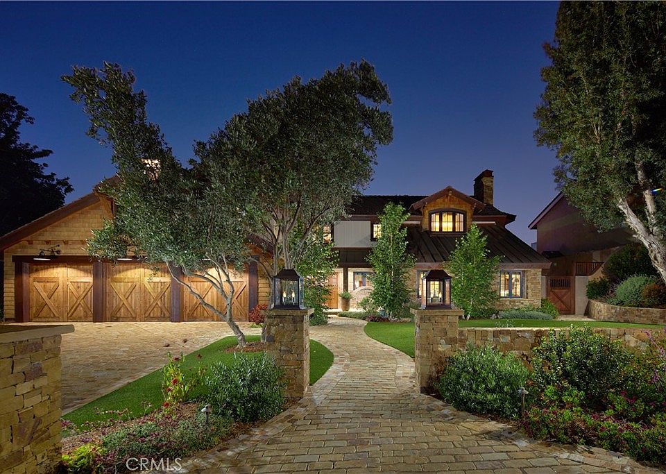 Perfectly positioned in the prestigious Nellie Gail Ranch community, this extraordinary estate on a sprawling 26,000-square-foot lot seamlessly combines refined elegance with rustic charm. Experience timeless beauty and unparalleled comfort in this remarkable home. Lush greenery, vibrant flowerbeds, and a charming stone paver pathway lead to a Dutch door entry, setting a welcoming tone. Handcrafted elements and modern touches, such as natural stone accents, copper detailing, and wooden doors for the three-car attached garage with attic storage, exude warmth and character. Inside, exposed beamed ceilings, stunning hardwood floors, reclaimed solid wood doors, and custom iron and millwork create an inviting atmosphere. Stacked stone walls add texture to the family and dining rooms, while the open-concept chef’s kitchen boasts a large island with an inlaid wood top, leathered finish quartzite counter tops, designer pendant lighting, top-of-the-line appliances, and custom cabinetry. Additional amenities include a potential wine cellar or butler’s pantry, a formal living room, a breakfast area, an office or flex space, a designated laundry room with custom tilework and a sink, and a bonus finished storage area upstairs. Baldwin and Ashley Norton hardware add a touch of luxury throughout. Expansive guest quarters offer a private living space, kitchenette, and backyard access, ideal for visitors or extended family. The backyard is an entertainer’s dream, featuring a covered loggia with a fireplace, overhead heaters, and a concealed TV. A sparkling pool and luxurious spa, surrounded by a stone patio, outdoor kitchen, barbecue area, and cozy fire pit, complete this outdoor oasis. The second level houses four additional bedrooms, including the primary suite with peaked ceilings, a wet bar, dual walk-in closets with custom built-ins, a private deck, and a spa-like bathroom with quartz counters, dual vanities, a stunning stand-alone soaking tub, a custom Infrared Sauna by Finnleo, and a separate shower. The additional bedrooms are spacious and well-appointed. Despite its serene and private setting, this estate is just minutes from trails, shopping, dining, beaches, and some of the most desirable public and private schools in Orange County, offering the perfect blend of tranquility and convenience.