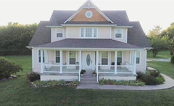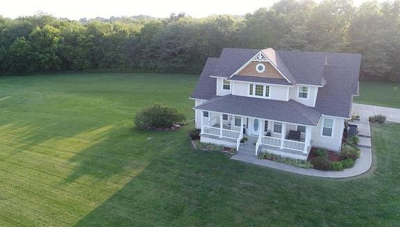 5.75 acres, Enjoy this one and a half story home with Master bedroom and Laundry on 1st level. Grand vaulted ceilings and a rod-iron railed balcony rise high above the great room and kitchen dining area to add to the dramatic look of this home. New roof in the fall of 2018, new hot water heater, newer heat and AC units, gorgeous light fixtures, walk-out basement to finish as you wish, stubbed for bathroom, large front covered porch, peaceful country living await.