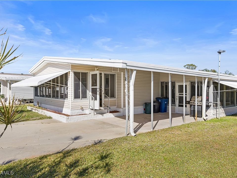 Discover the perfect blend of affordability and charm in the furnished, turnkey home nestled in the heart of Bonita Springs. This delightful home offers a unique opportunity to own a piece of paradise in a welcoming over 55 community with the added bonus of no HOA fees. With over 1500 sq ft of comfortable living space, this home is designed to offer the perfect Florida lifestyle. The home features a screened in patio, a covered carport, and a spacious Florida room - all light and airy and perfect for entertaining, or simply enjoying an early morning coffee. The home is fully furnished and move in ready, making it an ideal choice for those looking to start their new home right away. The flexible lay out affords two bedroom, two bathrooms, and a large living room. the additional 300 sq ft Florida room is a great space to feel like you are outdoors, without the bugs. 7 miles from Bonita beach and 12 miles from Ft Myers airport, it's perfectly located to enjoy downtown Bonita Springs and all that it has to offer..