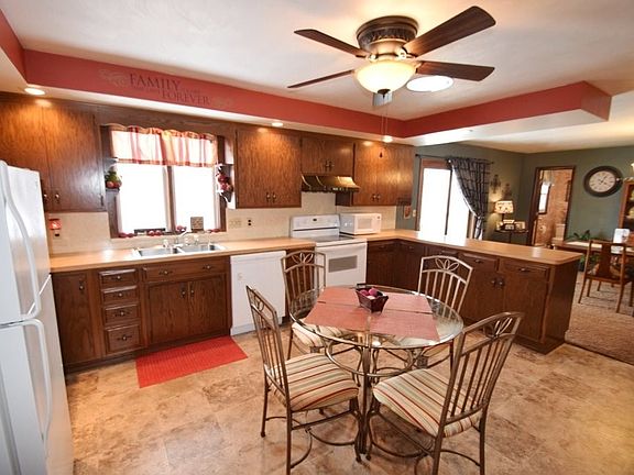 NOW AVAILABLE! Lovely large 1 story home located on over 1 acre! This home has seen many updates that include: updated gas boiler, A/C, flooring, hardwood floors, sump pump, plus siding! Huge kitchen with room for eat in space or future island! Tons of cabinetry in the kitchen and open to the formal dining space! Family room with wood burning fireplace & hardwood floor! Main floor laundry/mud room with vanity & sink. 2nd service stairway to the basement is located off the mudroom. Nicely updated hall bath plus Master on-suite! Full basement with unfinished rec space & canning room. Potential 4th bedroom or den space in the lower level. OVERSIZED 1 car attached garage with storage space plus detached garage/workshop! Outdoor space also features large deck, pergola, grape arbor, lots of yard space, swing set, & great front porch for just relaxing! Ideal location gives you that country feel yet close to town!