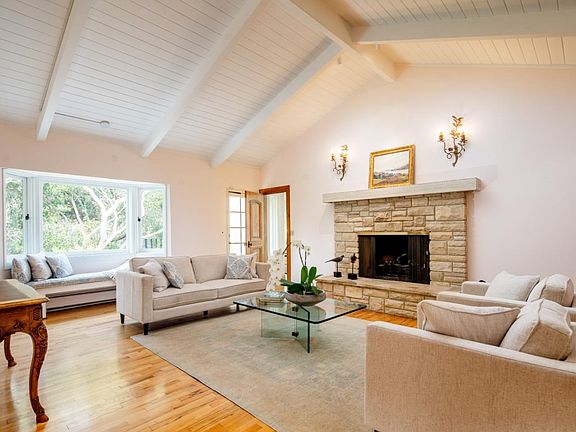 Situated on a private 16,200 sq ft lot, this exquisite Carmel cottage offers ocean views, meandering gardens, and a lovely guest house. The property is reminiscent of an English country home with its lush green lawn and beautiful garden, a wisteria framing the homes front windows, and several seating areas that overlook colorful plantings. The homes interior features open beamed ceilings, hardwood floors, paned windows, and two fireplaces. With three bedroom and three baths in the main house there is abundant space, charm, and ambiance. The guest house offers a welcoming living space with fireplace as well as a separate bedroom and bath. This property is not to be missed.