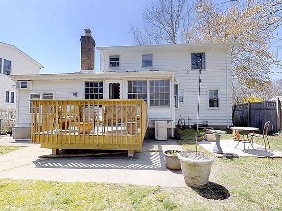 Great Cape Cod home w/ family room extension. 1st Floor has, Living Rm Dining Room - Kitchen - Family Rm & 1 Bedrm -- 2nd Floor has Master Bedrm & 2 Small Bedrms (1 is Captive listed as Den) plus a Full Bathroom - Basement is Unfinished - Large Fenced in Backyard, with Small Deck off the Family Room.