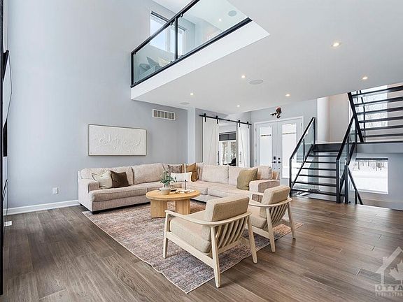 Nestled on 2 private acres, this stylish family home seamlessly blends modern design with the tranquillity of country living just moments from Orleans. Custom-built in 2022, it boasts 4 bedrooms and 3.5 baths. The well-crafted layout features expansive entertaining spaces, hardwood floors, pot lighting, and abundant natural light through large windows. The contemporary kitchen delights with sleek waterfall counters, book-match cabinets, high-end appliances, 'soft close' cabinetry, and a walk-in pantry. The open-concept family room is ideal for quality time with loved ones. Upstairs, the spacious master retreat indulges with a spa-inspired ensuite featuring a generous shower, soaker tub, exquisite tile work, and modern lighting. The second and third bedrooms share a Jack & Jill & offer ample closet space. The lower level is currently unfinished, with direct access from the garage, presenting an opportunity for an in-law suite or SUD for supplementary income. More Pictures are available.