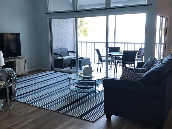 Beautiful lake views from this just renovated open and bright condo. Second floor affords high ceilings and privacy. All new luxury vinyl flooring and freshly painted creating a great flow. Large master with TV and updated bath features lake views. Guest room with TV and 3rd bedroom. Attached garage along with parking and 10 minutes to Beach. Perfect location close to all of your shopping and dining needs. Pools, tennis courts and a gym on site. Decorative and appealing in every way!