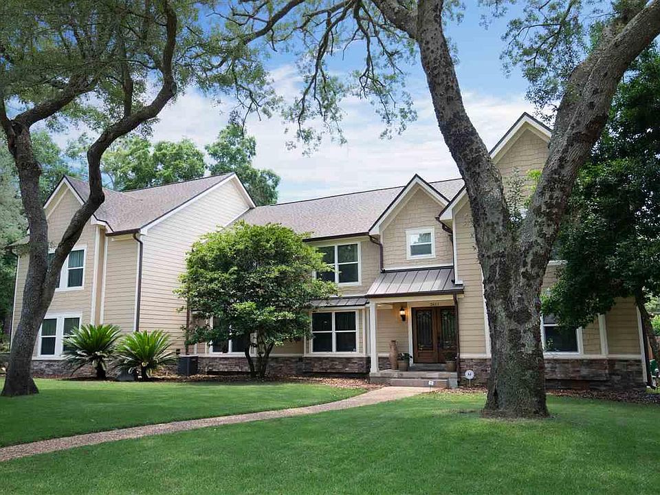 What a beauty! And the exceptional curb appeal of this property is only the beginning. With a huge renovation in 2014-15 that includes both exterior facade and interior design, this beautiful home looks and feels like brand new construction. The exterior is now composite wood plank siding, with shingle accent areas, double glass front doors with ironwork, travertine entry porch and brick accent wall on ground level, new roof and windows, while the interior features new ceramic wood look floors, neutral colors, beamed ceilings, open floor plan, a grand screened lanai area with inviting pool, and much, much more! A focal point in the expansive kitchen/breakfast area renovation is a granite topped L-shaped island, with 2nd sink, additional storage, and also seats six. The adjacent breakfast area adds more space for entertaining. The glass tile backsplash and wall complement the granite counters, stainless appliances, glass front cabinets and new lighting. The living area has a vaulted ceiling with wood beams, tiled fireplace wall, recessed lighting and extends to include the dining room. The oversized master bedroom has a sitting area and new luxurious bath area with glass shower, travertine floor and walls, granite counters, bowl sinks, and steam shower. The "mother in law" suite provides generous space for living/sleeping and also has upgraded bathroom. The additional 4 bedrooms are perfect size for children or guests. Continuing to follow the current trend in allocated space, a huge bonus/media room is perfect to use as the family desires. Not only is entertaining easy with the interior layout, the patio and pool area set a high bar to match. The "fab" outdoor kitchen has a built in grill and "green egg", a relaxing custom island so visiting the cook while overlooking the re-done pool deck and enclosure is easy. Since Birnham Woods was named with Shakespeare's literature in mind, this Dunsinane home carries the reference into the future.