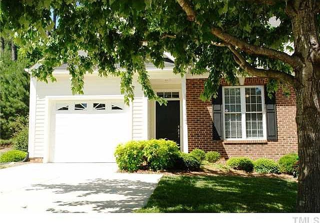 Adorable END UNIT Starter Home in desirable North Ral locale! MOVE-IN READY! Family Rm w/fireplace, vaulted ceiling, skylights & slider to patio. Nice view of wooded backdrop. Kitchen has generous counter space & cabs, micro & smooth cooktop. Super convenient location close to 540 & Triangle Towne Ctr, just minutes to RDU & RTP! Backs to Durant Nature Park. Hurry, won't last long!