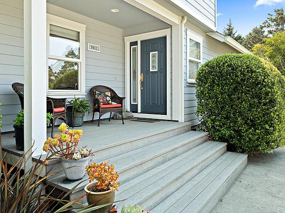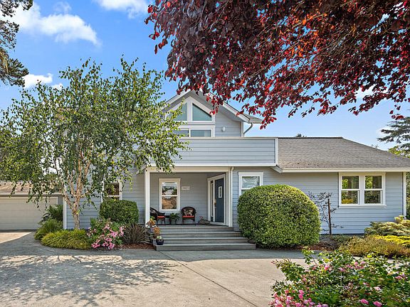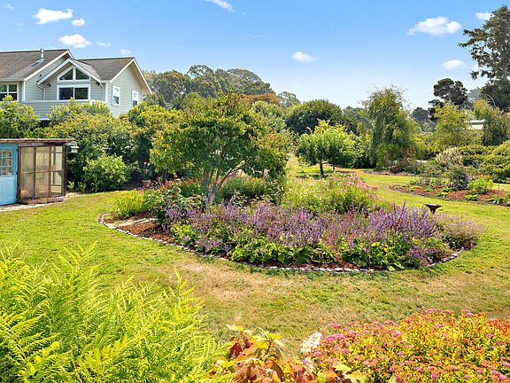 GORGEOUS CUSTOM HOME on almost half an acre near Hammond Trail. Beautifully designed 4 bedroom, 3 bath home with great open floor plan, perfect for entertaining.Light abounds throughout the house, with large windows and glass sliders to lovely and serene views. Hardwood flooring entire downstairs.The two downstairs bedrooms are currently used by owners for home offices. Upstairs is Large comfortable en suite master and guest bedroom, with ocean peek from front windows. Every vista is lovely, garden views from most rooms, and three decks for relaxing and enjoying the sun. Surprisingly private, the yard boasts extensive gardens. Corian solid surface counters in kitchen with bar counter,dining area nearby. Family room, utility room, finished garage, greenhouse. This property has it all!