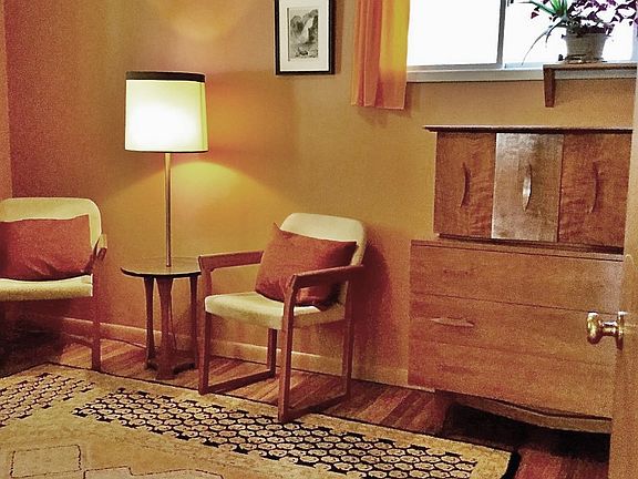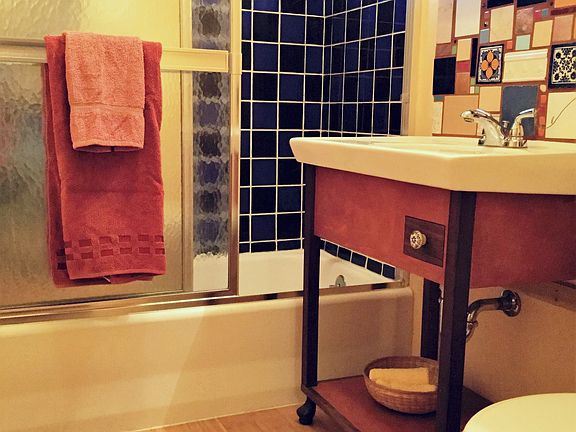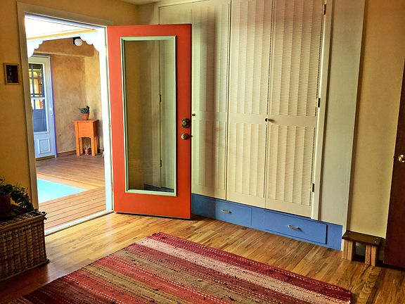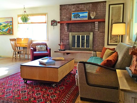 Nestled in a quiet & centrally located neighborhood, this home has many beautiful design elements and is just 5 minutes from Palmer Park. Entering the home, note the beautiful hardwood floors throughout. The kitchen has updated tile backsplash & flooring. The upper cabinets are painted in a neutral designer color w/ cherry wood lower cabinets (w/roll outs). Also included, a gas range w/convection oven, new farmhouse sink, granite counters & a pantry area w/ custom concrete counter tops. The living & dining room are spacious, open & bright w/ wood burning, brick fireplace. The bathroom has a custom backsplash & vanity, tiled bath & new bamboo flooring. Off the master bedroom is a private, Santa Fe style courtyard. The insulated attached garage was converted to a workshop space and is can be used as an art studio, workshop, or easily converted back to a 1 car garage. The spacious room attached to the garage was converted to an additional living space complete with heating, electrical outlets, Santa Fe style columns & painted concrete floors. Other features include a custom front deck, updated windows, updated electrical panel, new furnace as of 2016, and new water heater as of 2018. Large corner lot has mature shade & evergreen trees, flower & vegetable gardens, flagstone patio & much more!