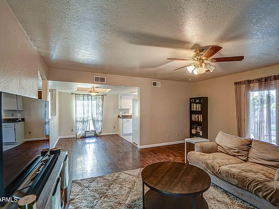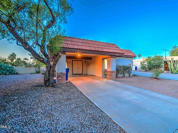 You'll fall in love with this charming home located in Camelot Golf Club Estates close to 202, hospitals, shopping, golf, and amazing hiking trails. Low HOA fees equate to less than $20 monthly! Split floor plan with Master and 2nd bedroom/den on opposite ends of home. Spacious master bedroom with walk in closet and bathroom. Stacked inside laundry. Separate dining area off the kitchen is open to the great room looking out onto a private patio and backyard with artificial grass area (no mowing!), mature trees and small garden. One car carport and driveway easily fit two vehicles and the carport has a built-in storage area. Home interior was freshly painted 2 years ago and wood-like vinyl flooring and tile is in great condition. This home is priced right and move-in ready - don't dela