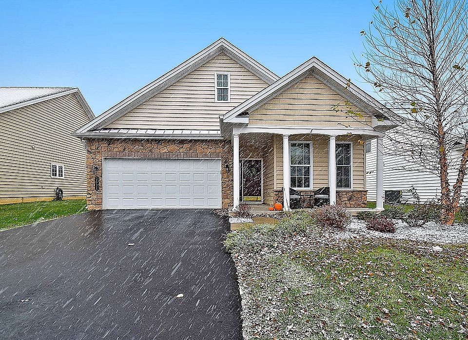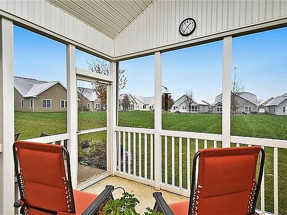 Looking for a beautiful & very active 55+ community? This 2 bedroom and 2 full bathroom home is one floor living at its best. From the front door gleaming hardwood leads you into the open floor plan which is perfect for entertaining. The family chef will enjoy cooking in the spacious kitchen. The large kitchen island allows for seating for 6 and there is a dining area too. The living room is bright and sunny. You'll be able to entertain during the warmer months on the screened in porch or the patio - all of which overlooks the large common grounds. There is lots of storage space above the garage. The community's clubhouse is the place for the private gym, library, in ground pool, yoga classes, wine clubs, meeting friends and many more activities.