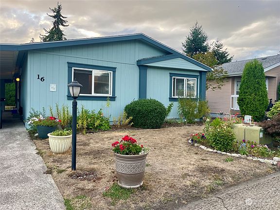 Welcome home to Parkwood Lane, a gated 55+ Community. This 2 bedroom, 2 bath home is well maintained and priced to sell quick! Open concept layout allow for natural light from the skylight and windows to shine throughout. Home features both a living room and family room. Spacious kitchen with eating area and lots of counter space. Primary bedroom is oversized, offering a large 3/4 bathroom and walk-in closet. Covered carport attached with storage shed. Landscaped yard in front and back of home with room for a garden. All appliances stay, including washer, dryer, stand up freezer and mounted flat screen TV! Home could use new carpet. Park is conveniently located to shopping, dining and freeway access. Park approval required with offers.