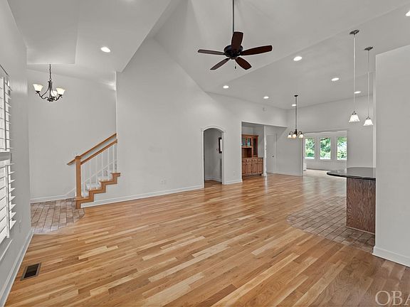 This home exudes character and charm. From the initial curb appeal to the beckoning sun porch you will find a perfect spot to enjoy every OBX season here. Over 2,400 sq ft and a 1st floor primary en-suite this home is perfect for year round living, a 2nd home, or as an investment property. The gleaming hardwoods are a nod to the quality you will find throughout. A large kitchen with granite countertops and stainless appliances centers the space and there is flexibility in the open floor plan making it perfect for entertaining, or every day living. The entry, kitchen and sunroom are adorned with brick-accented floors. The sunroom features a glowing electric fireplace as well as a wet bar, and this space perfectly connects to the rear yard which boasts an in-ground swimming pool. The main level also features cathedral ceilings, a pantry and half bathroom, and is only a few steps to the garage via a laundry/mud room. Complete with 1st floor en-suite the primary bath has a huge stepless shower and walk in closet - you never have to leave this main level! Upstairs you will find 2 bedrooms connected by a bathroom as well as plenty of attic storage and a huge bonus room. This room would make a great movie room, game room, play room or home gym or office. Seller is in the process of trying to obtain a 4 bedroom septic permit to make this a legal 4BR property. You will love the central location of the welcoming neighborhood, just a few blocks from the beach as well as numerous shops, dining, grocery, banking and more! The spacious lot size and nice mature trees and landscaping will help you escape when you want, all while being less than 0.6 miles from the Admiral Street beach access, via a traffic light and sidewalk path. This house is just 10 years old so everything is in great shape and move-in ready! No Flood Insurance Required. The seller has even performed a recent inspection with clean results. Want fully furnished, just ask us about furniture packages... It's a winner!