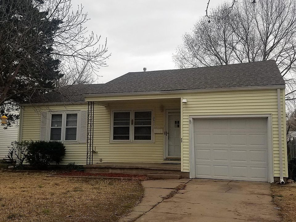 2611 S. Victoria Wichita,KS Rent: $ 625.00 Deposit: $ 625.00 Pets: Negotiable, no aggressive breeds. Utilities: Resident shall pay all utilities including trash, lawn and pest control. Bedrooms: 2 Baths: 1 Heat and air: Central Kitchen: Refrigerator, range, and disposal. W/D: Separate utility room with washer dryer hook - ups. Flooring: Wood Sq Ft: 834 Yr built: 1950 Parking: 1 car attached garage Availability: Now Term: 1 Year Internal features: Beautiful hard wood flooring. Open floor plan for kitchen, living room and dining room. Utility room with washer and dryer hookups. External features: Fenced in yard.