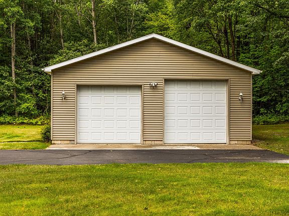 Looking for that peaceful up north feeling located in a secluded area in the great community of Sugar Springs, then look no further. This spacious 1482 sq. ft. RANCH with 3 bedrooms and 2 full baths has been well maintained over the years. The open floor plan creates a great space for family and / or entertaining. Kitchen has lots of storage, has been updated with Corian counters and has sliding doors that open to the large deck overlooking the woods. You'll love the large primary bedroom with a walk in closet and private bathroom that has a walk-in bathtub and walk-in shower. You'll enjoy your morning coffee with a beautiful view of the woods on either the back deck under the awning or sitting in the newly built Sunroom with windows all around. You can't go wrong either place as there are plenty of deer and other wildlife to enjoy regardless of where you choose to sit and relax. The 30 x 34 garage will give you plenty of room to store your cars and toys. Home also offers a whole house generator giving you reassurance that if the power goes out, you won't be inconvenienced. Some of the updates include new hardwood flooring throughout, all new windows 5 years ago that come with a transferrable 35-year warranty, new roof on home in 2022 and garage in 2023. Home is located on 4 lots so there is lots of room to spread out. Sale also includes the two lots across the street. Living in the Sugar Springs community means you have lake access to an all sports lake, several beaches, an 18-hole championship golf course, built in Olympic size pool, work out facility, tennis courts, campgrounds walking trails and an onsite restaurant.
