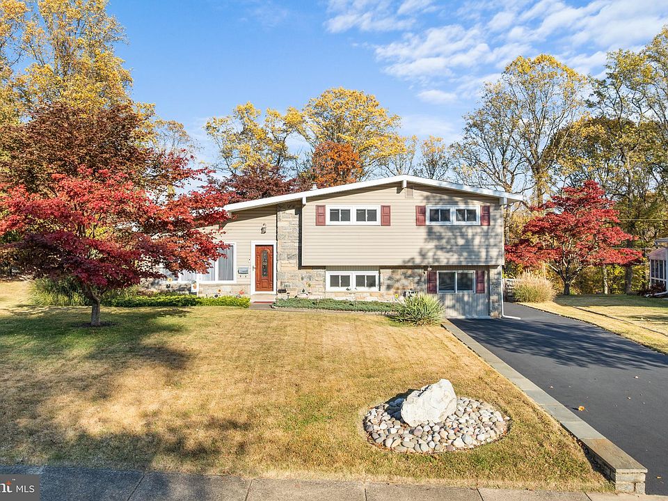 Welcome to your new home! Upon entering this sun filled contemporary split level home with vaulted ceilings, you will see it has been lovingly maintained. It has an open floor plan with wood burning fireplace in LR, DR and kitchen peninsula. Eat in kitchen boasts plenty of cherry cabinet space, granite countertops with stainless steel appliances. Large hall upstairs leads to 3 bedrooms; primary bedroom includes ensuite bath with whirlpool tub. Bright hall full bathroom features skylight. A bonus room for possible 4th bedroom, office or playroom with cedar closet is downstairs. Hardwood floors have been refinished, with hardwood under 2 upstairs bedroom carpets. Downstairs spacious family room, leads into a large laundry room, powder room, and small workshop with side door access to driveway. A large 3 season enclosed porch off DR looks out on private back yard retreat featuring an in-ground swimming pool with post and rail fenced perimeter and upper flat fenced area with built in natural gas grill.