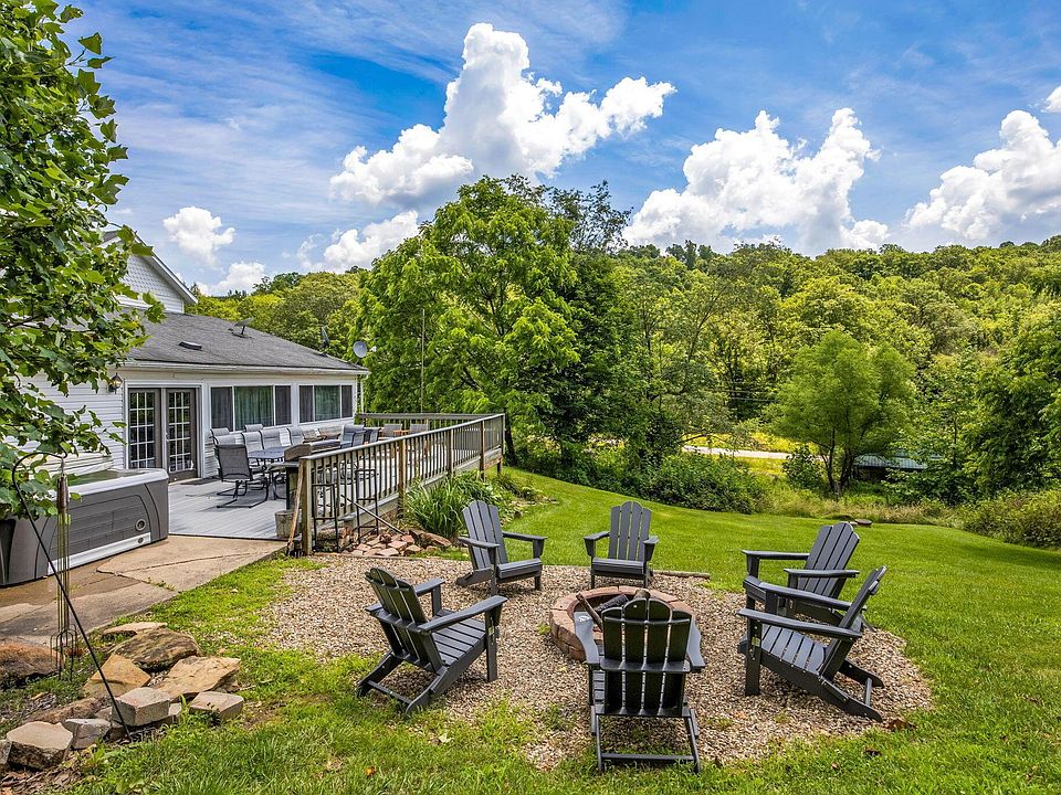 With 5 beautiful acres to marvel in with every season, most notably the fall. There are perfect outdoor spaces to enjoy them, including oversized deck, the bubbling hot tub, covered front porch, and firepit.