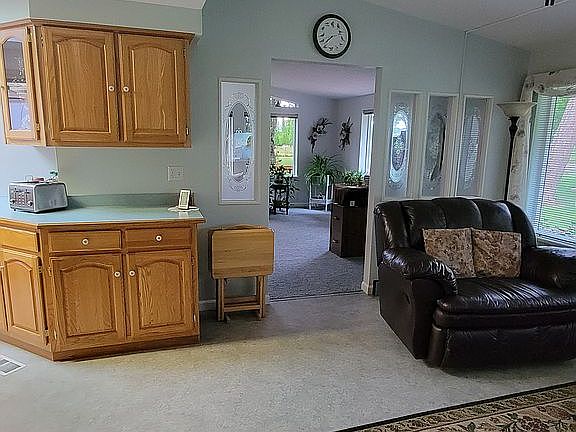 Large kitchen with lots of cupboard space and lower cupboards have pull out shelves. Great counter workspace for the cook. Home is bright with lots of light from windows and skylight. Very convenient laundry/mudroom. Master bath and walk in closet make the master bedroom a retreat. Many mature trees and shrubs, grandma's garden, open lawn space and lake view make this a country living delight. The insulated, oversized double car garage and covered RV parking give the man of the house the space to put his toys and call his own.