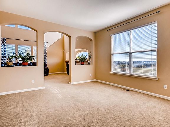 This home is beautiful and immaculate located at the end of the cul-de-sac with city views and view of Aurora Reservoir. Adjacent to open space, parks and walking trails. The home is very open with lots of natural light and amazing views from almost every window,. Built-in bookcases in the loft and office,. Walk-out basement with rough- in for another bathroom. There are 2 staircases for easy access to the upper level. This is a former model home with many builder upgrades. Floors are real hardwood planking. Cherry Creek schools