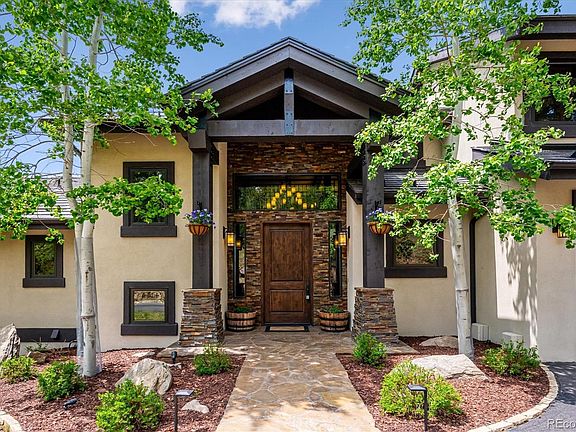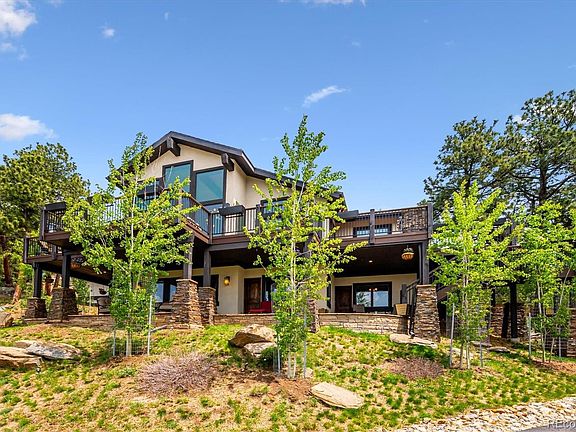 No McMansion here. This is a luxury A.D. Wolfe-designed and built, right-sized, mountain home. The epitome of quality over quantity. Spectacular mountain view setting with dramatic rock outcroppings, majestic Ponderosa pines, and more than 100 added spruce and aspen trees, fully irrigated. This backs to the 2400-acre Genesee Park, part of which you drive through to get here. Watch for buffalo! Deer and elk abound. Built in true Colorado mountain style, with an abundance of wood, stone, and windows that bring all that outside glory into your living spaces. Enter a large foyer that draws you through the great room to the expansive snow-capped Rocky Mountain views, almost 180° across. This great room, with its wall of windows, boasts soaring cathedral ceilings, a fireplace, a wet bar, and shimmering natural stone floors. Adjacent and open to the great room is a gourmet kitchen with alder cabinetry, top-quality appliances and a large, bar-height island that seats 5. Perfect home for entertaining or just cozy down and enjoy the grandeur and serenity by yourselves. The spacious primary suite includes a fireplace, two walk-in closets, and a beautiful five-piece bathroom. Even the walkout basement bedrooms, each with an ensuite bath and exterior door to the patio, enjoy better views than you’ll find in most other homes. To fully appreciate this setting, step out onto the spacious wrap-around deck with its ambiance lighting and irrigated planters. The extensive professional landscaping includes drip irrigation and accent lighting that brings it alive at night. The lower-level patio has the added benefit of the dried-in deck above and ample lighting to enjoy in any weather, day or night. There is abundant guest parking and turnaround space off the paved driveway, a 3-car oversized garage, a covered entry, and a heated front walkway. Also, 2 Daikin mini-split AC units, in-floor radiant heat, 2-year-old deck, and just 30 minutes to downtown Denver. Prepare to be awed!