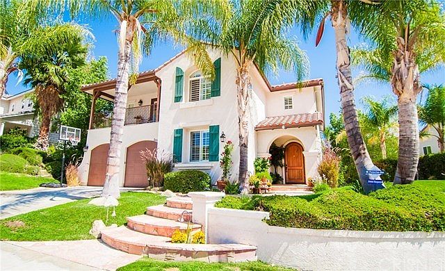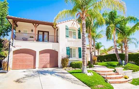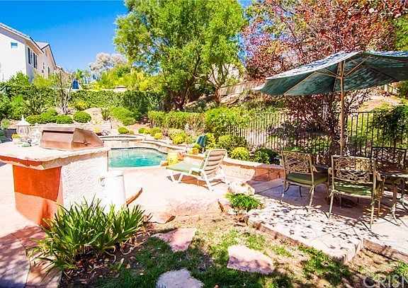 Sharp Stevenson Ranch pool home! Entertainer's yard with Pebbletech pool, BBQ, nice awnings & hardscape. Nice upgrades include wood floors, shutters throughout, upgraded kitchen in Quartzite with newer appliances & new carpet. Pride of ownership throughout with newer figures, built-ins, surround sound and more. Popular open floor plan with full bed and bath down, 4 beds up - all good sized! This is a sharp, move-in condition home!