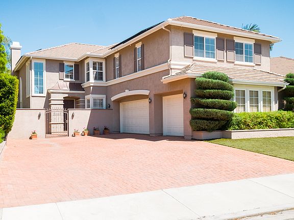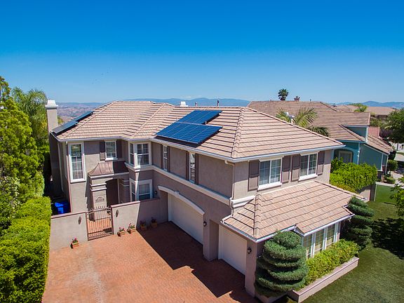 Spectacular Location, Exquisite Views, Large Entertainer's Backyard w/privacy, Interlocking brick driveway can have up to 4 cars + 3 car garage & Solar.Stunning can't describe this well appointed executive home.Custom upgrades include newer living room floor, newer designer paints on complete interior, recessed lighting, bose speakers & shutters.Entry closet boasts a granite topped cabinet w/wine refrigerator. Living room has Dramatic high ceilings, picturesque fireplace & gorgeous large picture windows w/views to the resort like back yard.Kitchen equipped w/granite counter tops, striking cabinetry & perfect for entertaining.Grand center island has plenty of room for food prep & eating.There are double ovens, microwave, trash compactor, dishwasher, 5 burner gas range, refrigerator matching cabinets & wine glass holder.Family room has a stellar fireplace & views.Charming bedroom & bath with shower downstairs for guests.Master suite is considerable & has a balcony with unbelievable views.Master en suite features newer glass shower enclosure, jacuzzi tub, dual sinks, separate loo area & walk in closet. Upstairs landing area has blt/in book shelves & built in office console. Magnificent back yard w/custom hardscape, wood burning granite fireplace, waterfalls, pool w/infinity overflow, blt/in bbq w/side burner & sink set in a granite surround hosting a Palermo Spa, bose speakers & the VIEW!!!!! + Professionally installed, no maintenance, manufactured grass in front & back.