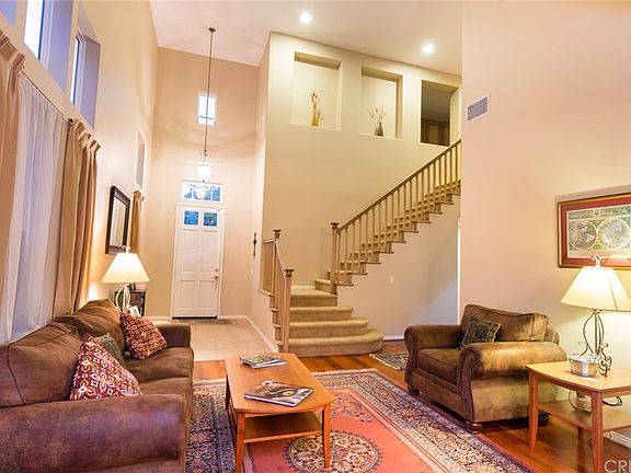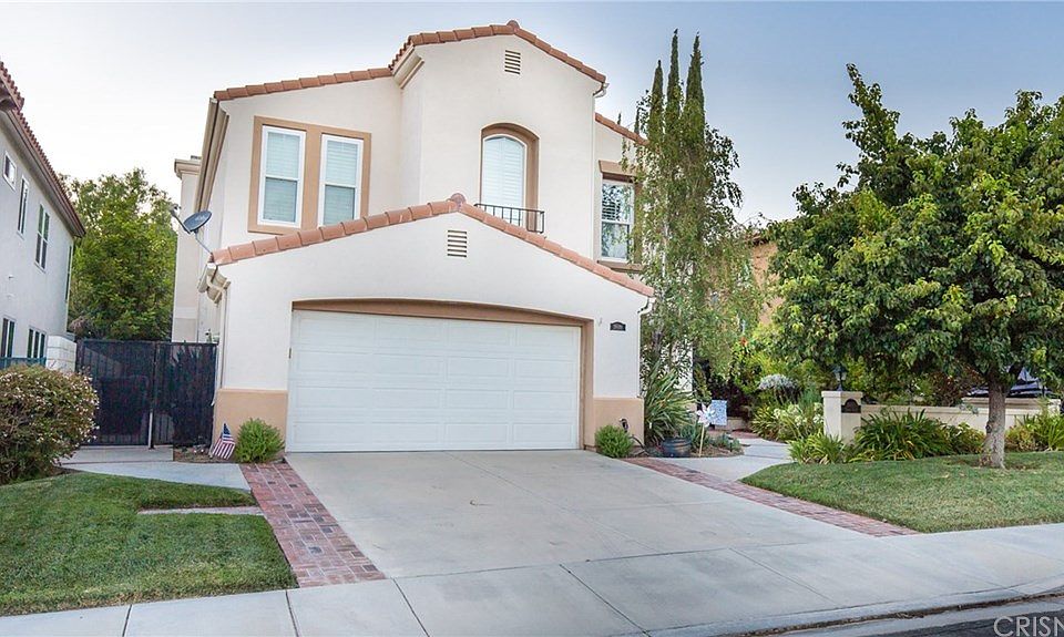Charming Stevenson Ranch home, located on cul-de-sac. This home features downstairs office and bedroom with private bathroom. Lovely hardwood floors in living room dining room and downstairs halls, high ceiling in living room formal dining kitchen with center island and breakfast area, Family room with fireplace. Make your way upstairs to the master suite offers Master bath with double sink, Office- retreat & private balcony. Three more generous size bedrooms upstairs and full bath,upstairs laundry. Step outside to your own private retreat covered patio flagstone outline pool and spa barbecue center w/sink, stool bar. Located near Blue Ribbon schools, parks, dining, & the 5 freeway.Pride of ownership!