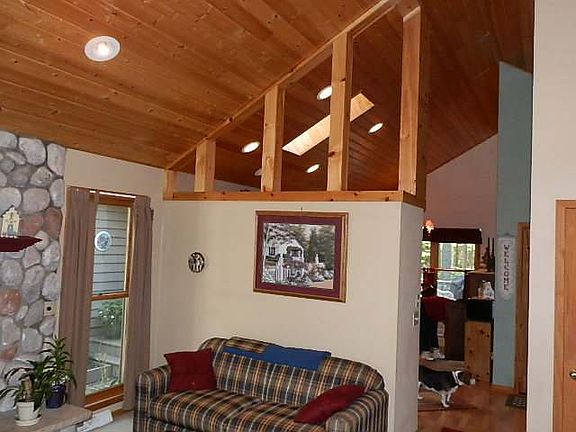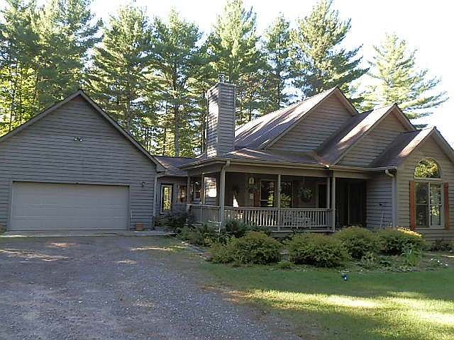 Extremely private property featuring 38.5 acres of level high ground, loaded with a mixture of huge towering pines and hardwoods! Custom two- bedroom home with additional large office and full bath. The master bedroom features attached master bath, walk-in closet, large windows, cathedral pine ceiling and door to private deck. Open concept kitchen, dining area, Jenn Air downdraft stove beautiful wood cabinets and cathedral pine ceiling which carries through to the large great room complete with beautiful stone fireplace! Full basement, wonderful entry room, gorgeous covered porch, large rear deck, two car attached garage plus an additional two car detached garage! Beautiful landscaping throughout, located on the snowmobile trail and close to many fantastic lakes! Truly a wonderful private setting surrounded by beautiful woods!