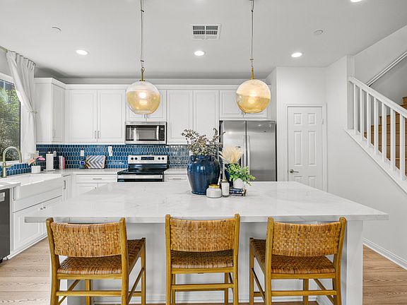 This new construction home offers an open-concept kitchen, dining, and living area with a half bath and access to a 2-car garage. The cozy side yard adds outdoor charm. Upstairs, the spacious primary suite includes a reading nook, dual sinks, a separate tub and shower, and a massive closet. Two additional bright bedrooms feature large closets and blackout curtains, sharing a dual-sink bath with a private shower area. Sleeps 6 comfortably with well-appointed, inviting spaces throughout.