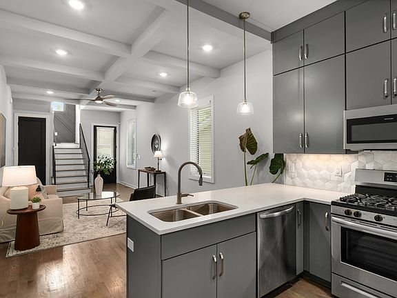 This stunning Downtown home will steal your heart when you see inside. Modern luxury style and surprising spaciousness all within 5 minutes of Downtown. YOU HAVE TO SEE THIS PRIMARY BATH! The oversized soaking tub in the huge walk-in shower will take your breath away! Great layout for a home office or roommates. Designed by luxury designer J.Latimer this home features 10-ft vaulted ceilings, designer lighting, spacious bedrooms with ensuite bathrooms, great closet space, and 2-level exterior decks. The open-concept living area has 8-ft doors, granite countertops, hardwood floors, and stainless steel appliances. Off-street parking in your driveway gives you privacy and convenience. The storage closet off the back deck gives you additional space. INVESTORS THIS HOME RENTS WITH CASH FLOW.