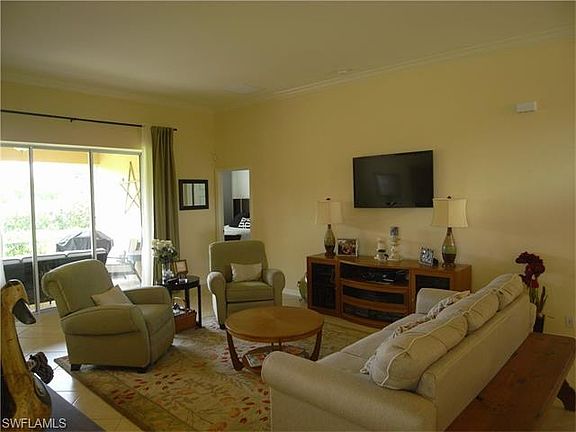 Welcome home to lush winding tree lined roads with miles of walking or biking paths. This desirable gated SW Cape community," Sandoval" offers so much: full time rec center with daily activities: wine tasting, yoga, movie night, Friday get togethers around the tiki hut at the pool. For the sports enthusiast, stroll from this home to the tennis courts, volleyball, basketball, bocce ball, fitness center and resort style pool with slide. This SUNNY, SOUTHERN EXPOSURE home boasts: tile roof, paver drive, light DIAGONALLY installed tile floors in the great room, formal dine, kitchen and breakfast area,+wood floors in the den. The great room has volume ceilings accented with CROWN MOLDING, and 8 ft tall POCKETING SLIDING DOORS to the screened lanai perfect for those evening breezes. This open plan flows beautifully with the heart of the home being the upgraded kitchen with tall WOOD CABINETS, solid surface counters with INTEGRATED SINK and stainless appliances. Enjoy your morning coffee in the breakfast nook overlooking the large lush backyard. Spacious master retreat, with dual vanities, dual walk in closets, separate shower and garden tub. This impeccable home is a joy to behold.