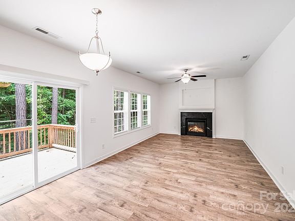 Discover this charming and spacious 4-bed, 2.5-bath residence nestled on a generous 1-acre lot in a peaceful Concord, NC neighborhood. Step inside to a stunning living room featuring elegant laminate flooring, decorative corner moldings, a classic ceiling fan, and a warm, inviting fireplace. The kitchen features a large island, pristine white cabinetry for ample storage space, and sleek stainless steel appliances. Retreat to the generous primary suite, fully carpeted for comfort, boasting a luxurious ensuite bath with dual sinks, a soaking tub, separate shower, and a walk-in closet for all your storage needs. Enjoy seamless indoor-outdoor living with direct access to a wooden deck overlooking a serene, tree-lined backyard, perfect for relaxing, gardening, or weekend barbecues. Conveniently located close to shopping, dining, and with easy access to I-40.