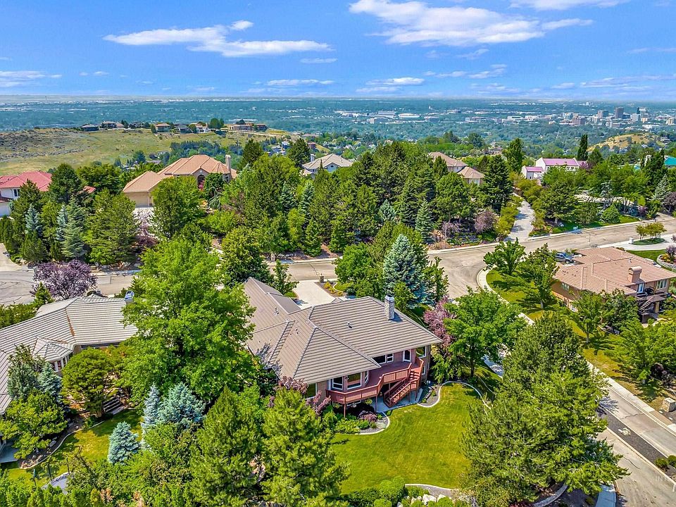 Nestled in the coveted East Boise foothills, this stunning and spacious residence offers breathtaking views and is an exceptional retreat for those seeking comfort and tranquility. A warm ambience is provided by the hardwood floors, vaulted and coffered ceilings, and new paint in the dining room, kitchen and den. Boasting 5 bedrooms and 4 bathrooms, plus a well appointed office, these versatile spaces allow for the perfect work-from-home lifestyle. With a main floor primary bedroom as well as a guest bedroom, the well designed layout ensures comfort for all, while the full brick exterior and tile roof exude durability, charm and timeless elegance. This incredible foothills location offers easy access to nature and bike trails, parks, downtown Boise, St Luke's Medical Center and scenic views that will leave you in awe.