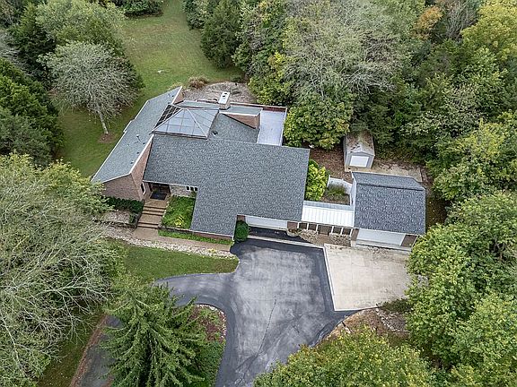 Call Warren At 502.241.9859 .Square footage is total finished living space. Home price below recent appraisal. High Quality, custom Architect designed construction throughout. features a large Passive Solar Skylight Atrium over interior fish pond , Creekstone Columns and Breakfast Bar. Sloping ceilings in each main floor room. Floor plan is open with large L shaped deck designed for large family gatherings and entertaining. Exciting indoor-outdoor enjoyment surrounded by nature on 4.88 acres. Master Bedroom comes with two bay windows, double spa/tub and double showers and two walk-in closets with custom shelving. Upstairs Kitchen has built in convection and microwave ovens and a down draft grill. See though fireplace in family and sitting room. Second floor has kitchen with built in convection oven and microwave too! Second floor includes a second master suite, a work out room and Walk in closet or theater room with fireplace. House has a 4 line phone system and state of the art security. Attached Garages for 4 or more cars and a workshop area. External large shed for car, tractors, boat or lawn equipment.
