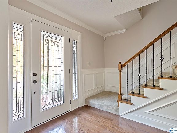Fabulous 4 bedroom home situated on a gorgeous private treed lot located in a prime SE Huntsville location. Mostly all just painted interior. Updated kitchen w/granite counters & tile backsplash. 3 Living areas including a 27 x 23 REC room with wet bar & built in's. 4 spacious bedrooms. Plantation shutters throughout. Lots of hardwood, tile, crown molding & wainscoting. You love the outdoor living this home offers with its 29 x 12 Screened Porch & 12 foot vaulted ceiling plus an add'l patio area. The side entry garage is an extra wide 26 feet w/storage closets. Vinyl windows, siding, & brick make for a low maintenance exterior. Detached storage building. Convenient to Redstone & shopping!