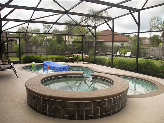 Short Sale - already in process with lender. Move-in-ready Pool Home features 3-Bedroom/2-Bathroom Split-Plan design, sprawling Living Room large enough to entertain all your guests, separate Family Room/Dining Room combo overlooking beautiful Pool area, open Kitchen plan with Wall Oven/Microwave combo, Solid-Surface Countertops, Breakfast Bar and Eat-in space adjacent to Lanai. Spacious Master Bedroom featuring Tray Ceiling, large Walk-in Closet, Sitting/Reading Area with views to pool and backyard. Adjoining Master Bath includes Dual Vanities and garden tub with separate shower. Screened-in Lanai and Swimming Pool with heated Spa overlooking the large privacy-fenced backyard accented by free-standing architectural pergola and putting green. Other amenities include convenient Interior Laundry Room, large Walk-in Closet off main hallway, long window with panoramic view of pool and backyard from Dining/Family Room, aesthetically preferred Side-entry garage.