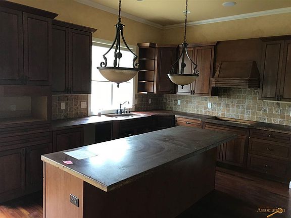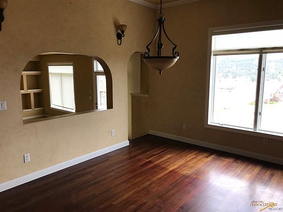 6 beds, 4 full bath, 2 half baths, study with custom cherry shelving, theater room, wet bar, formal dining room, 10 area surround sound with huge kitchen all on a 3 acre lot with amazing views of west Rapid City. 4 bedrooms upstairs all come with walk in closets. Kitchen features cherry cabinets and concrete counter tops, Brazilian cherry hardwood floors. Master features double sided fireplace, whirlpool tub, beautifully tiled shower, double sink and huge 20X8 walk in closet. Lower level features another gas fireplace and wet bar in family room. Basement also boasts theater room with theater seating with built in surround sound and lighting.