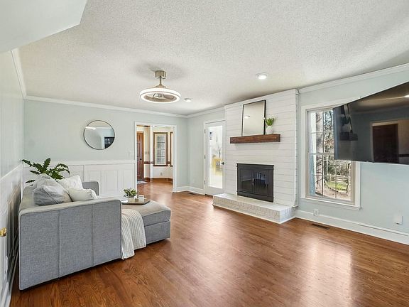 Welcome to your dream home in Wake County! This charming 1.5-story ranch style home sits on a quiet street in a quaint subdivision with no HOA. Enjoy the private 0.69-acre lot with new fence and large new deck. Recent updates also include freshly painted exterior and new front door. Inside, hardwood floors flow through the main level, featuring a cozy family room with wood-burning fireplace. Updated eat-in kitchen offers granite countertops, tile backsplash & breakfast bar. The 1st floor primary suite includes an updated bath with granite countertops and tiled walk-in shower. Home office and separate dining room completes the main floor. Upstairs has 2 bedrooms plus full bath & bonus space. Tons of storage -oversized garage, large shed, and HUGE partially finished space above the garage - approx 15'X23'. Move-in ready charm with modern touches — schedule your showing today!